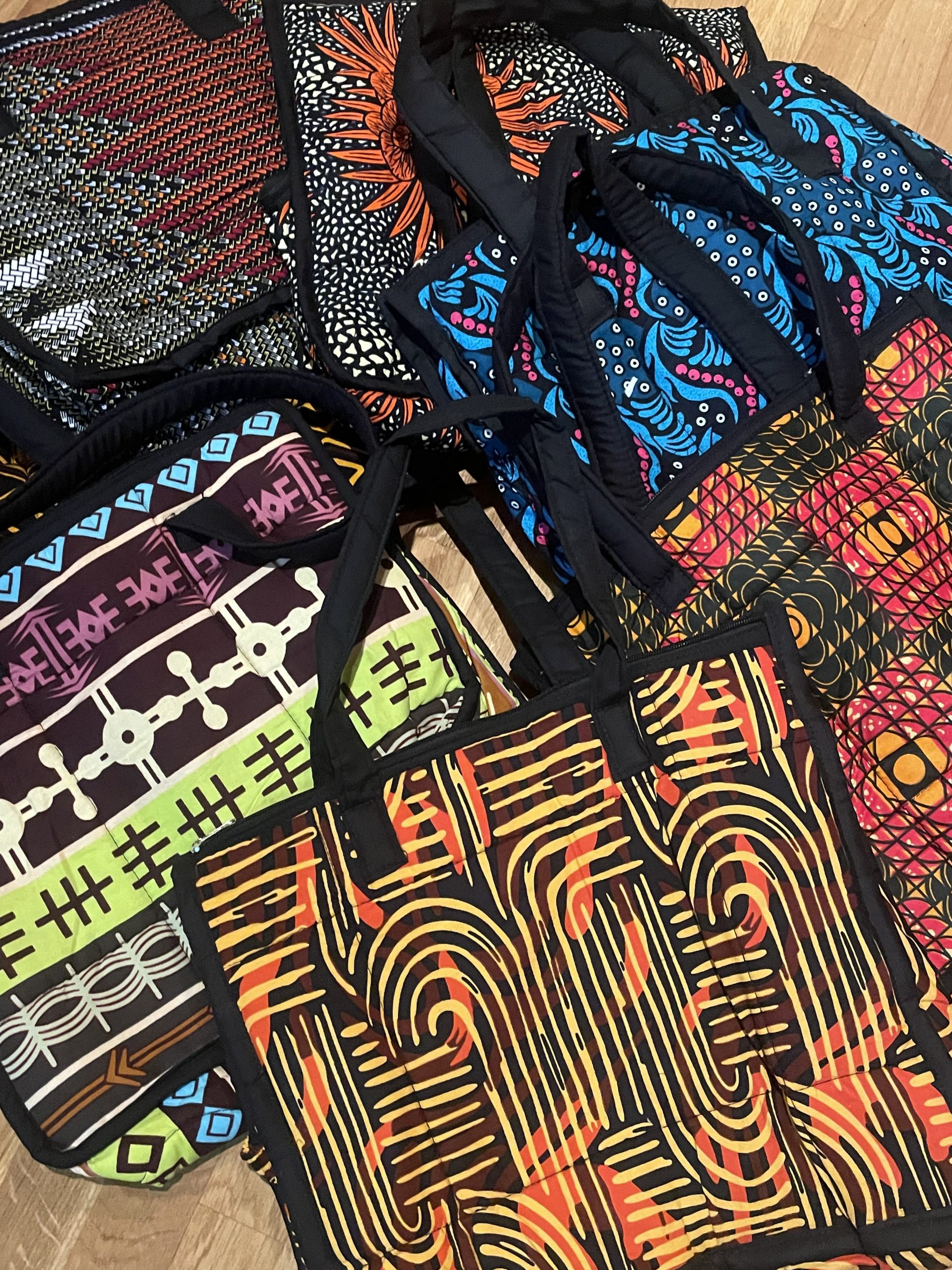 Bolso con diferentes Kitenges africanos de algodón 100%, forrados por dentro y con un bolsillo. Luce los colores africanos en tu día a día.