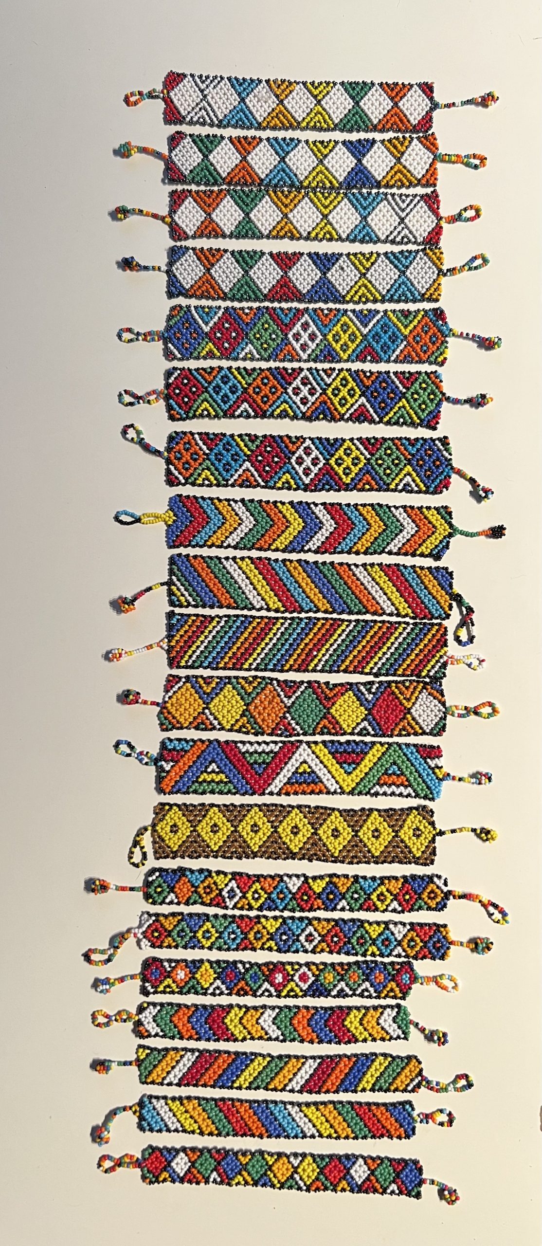 Pulsera hecha a mano de bolitas, con preciosas y lucen muchísimo con sus colores vivos. Diferentes estampados, si quieres una en especial puedes escribirnos para elegirla.
